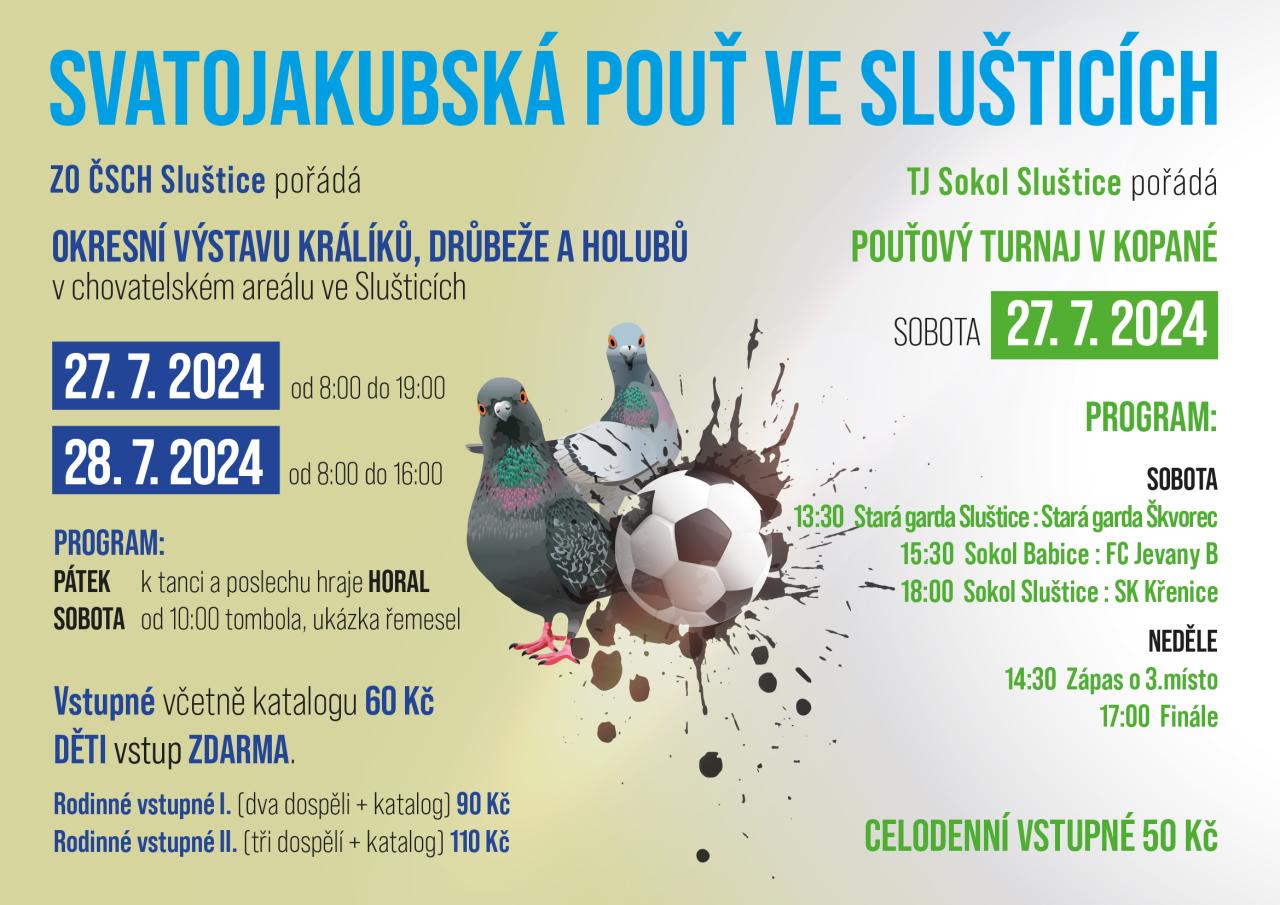 Srdečně zveme na tradiční Sluštickou pouť spojenou s chovatelskou výstavou a pouťovým fotbalovým turnajem.